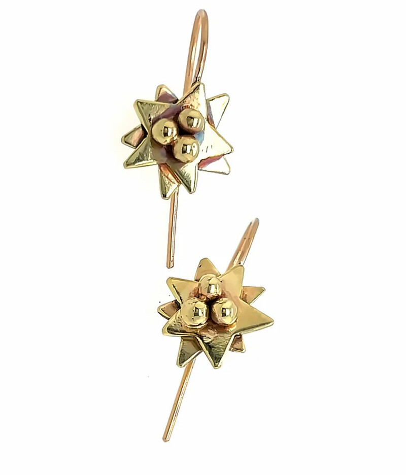 Petite Flower Earrings in Polished Brass with 14K Gold Filled Earwires