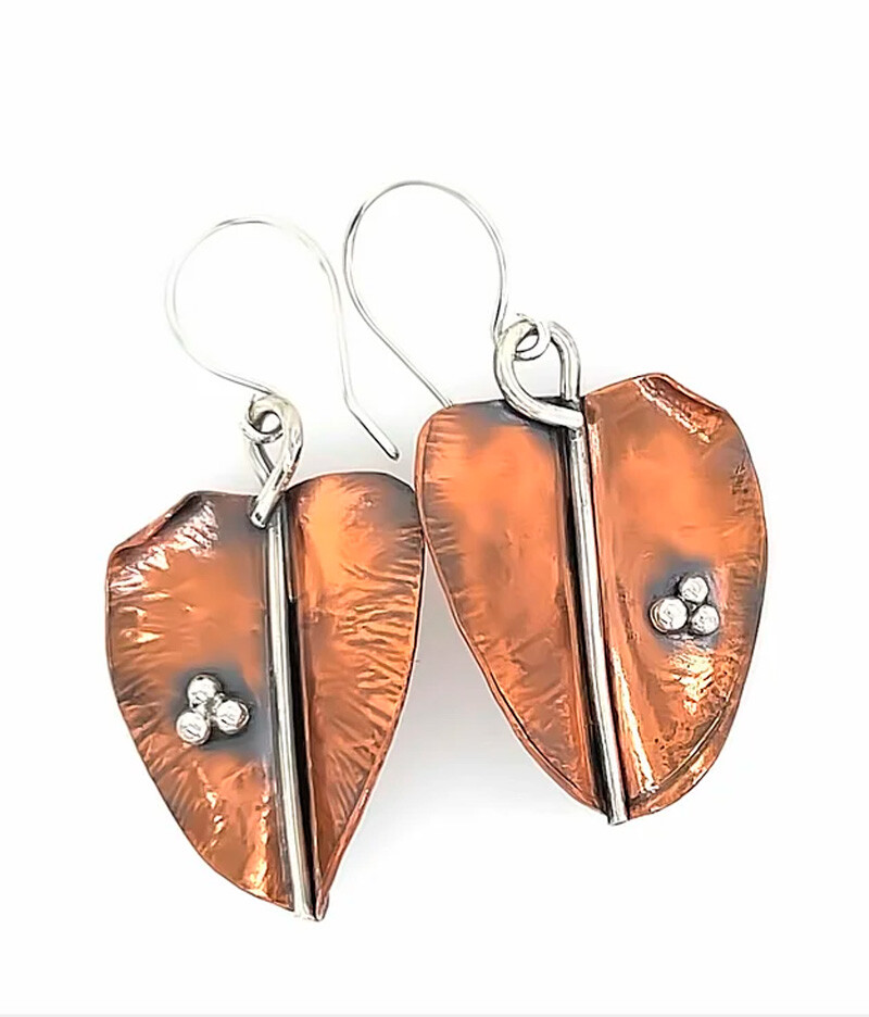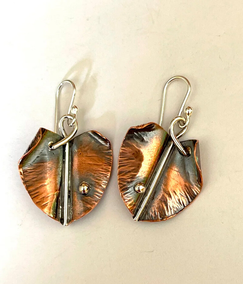 Foldformed Leaf Earrings in Copper and Sterling Silver