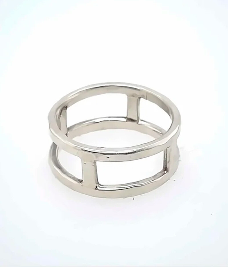 Four-Pillar Double-Band Sterling Silver Ring, Size 7 1/2