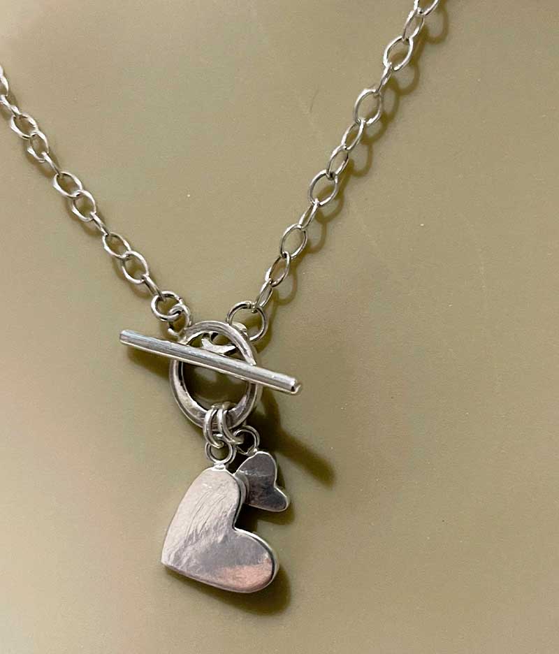 Double the Love Sterling Silver Toggle Heart Necklace