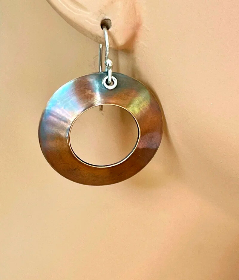 Copper and Sterling Silver Textured Storm/Lightning Earrings