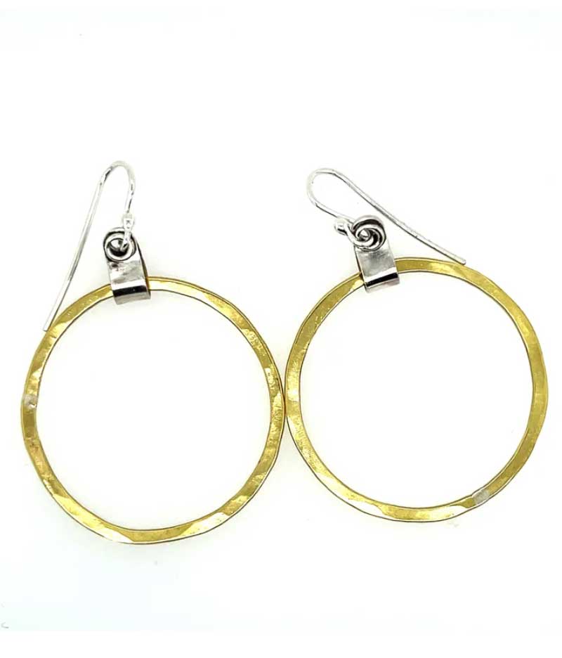 Golden Brass Hoops With Sterling Silver Accents Mixed Metals